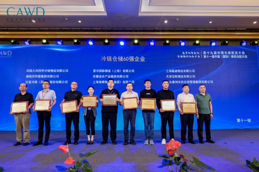 紅星冷鏈副總經(jīng)理張振興(左三)領(lǐng)取“冷鏈倉(cāng)儲(chǔ)60強(qiáng)”獎(jiǎng)牌